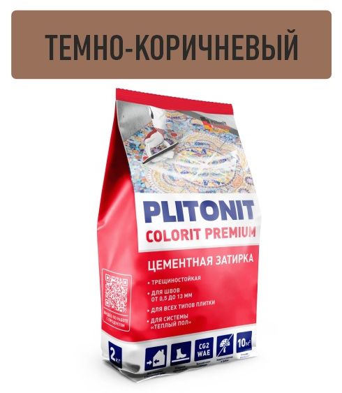 Затирка для швов Plitonit Colorit Premium биоцидная, темно-коричневая (пакет 2 кг)