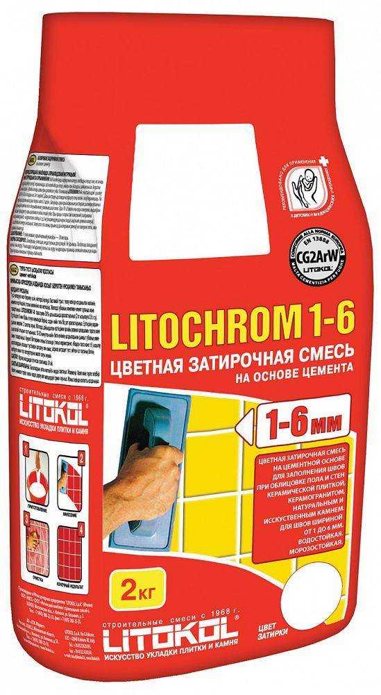 Litochrom 1-6 — цементная затирочная смесь для межплиточных швов с улучшенными техническими характеристиками. Специальная затирочная смесь на основе портландцемента, минеральных наполнителей, высококачественных полимерных и органических добавок, цветных пигментов.