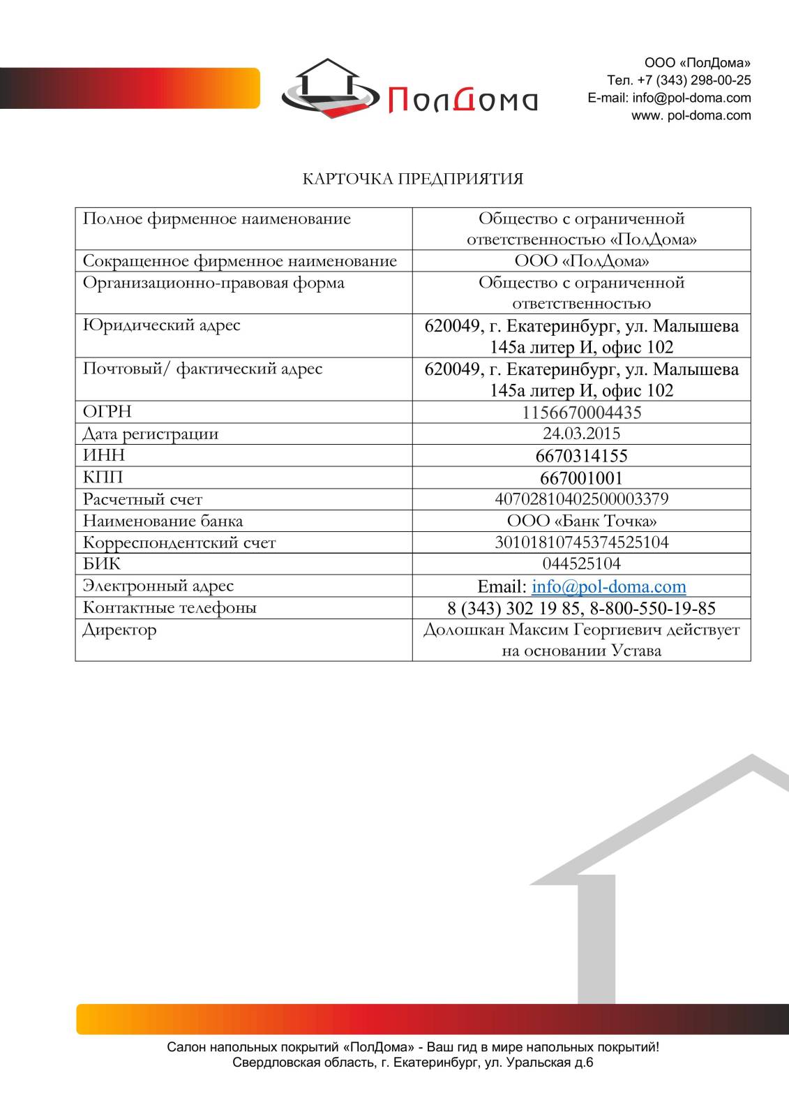 ООО "ПОЛДОМА" Общество с ограниченной ответственностью "ПолДома"